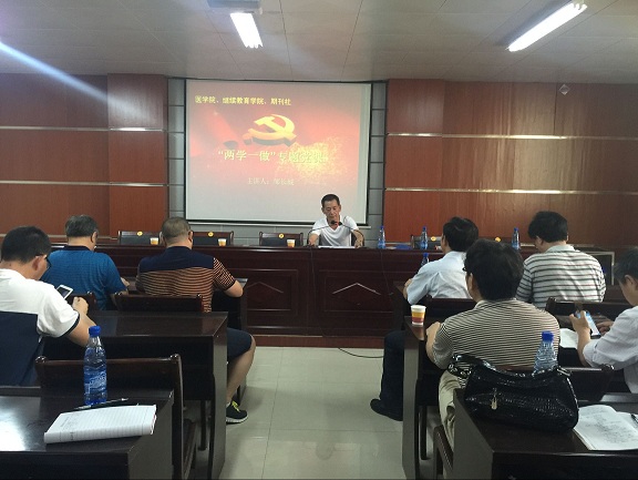 6月22日下午,正校级督导邹长城在设计与艺术学院二楼会议室为继续教育学院、医学院、期刊社三个部门的全体党员讲授 “两学一做”学习教育专题党课。