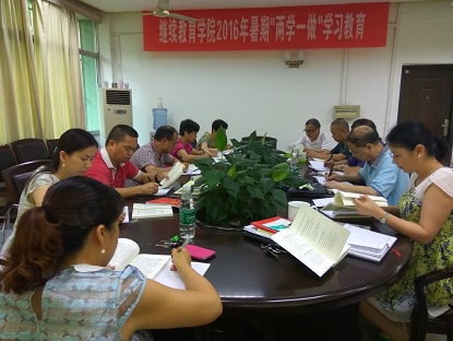 为深入贯彻党中央在全体党员中开展“学党章党规、学系列讲话,做合格党员”学习教育活动的决定,继续教育学院党总支结合校党委要求,在暑假刚刚开始之际,组织全院党员开展“两学一做”学习教育活动。本次学习教育活动分两个阶段进行。